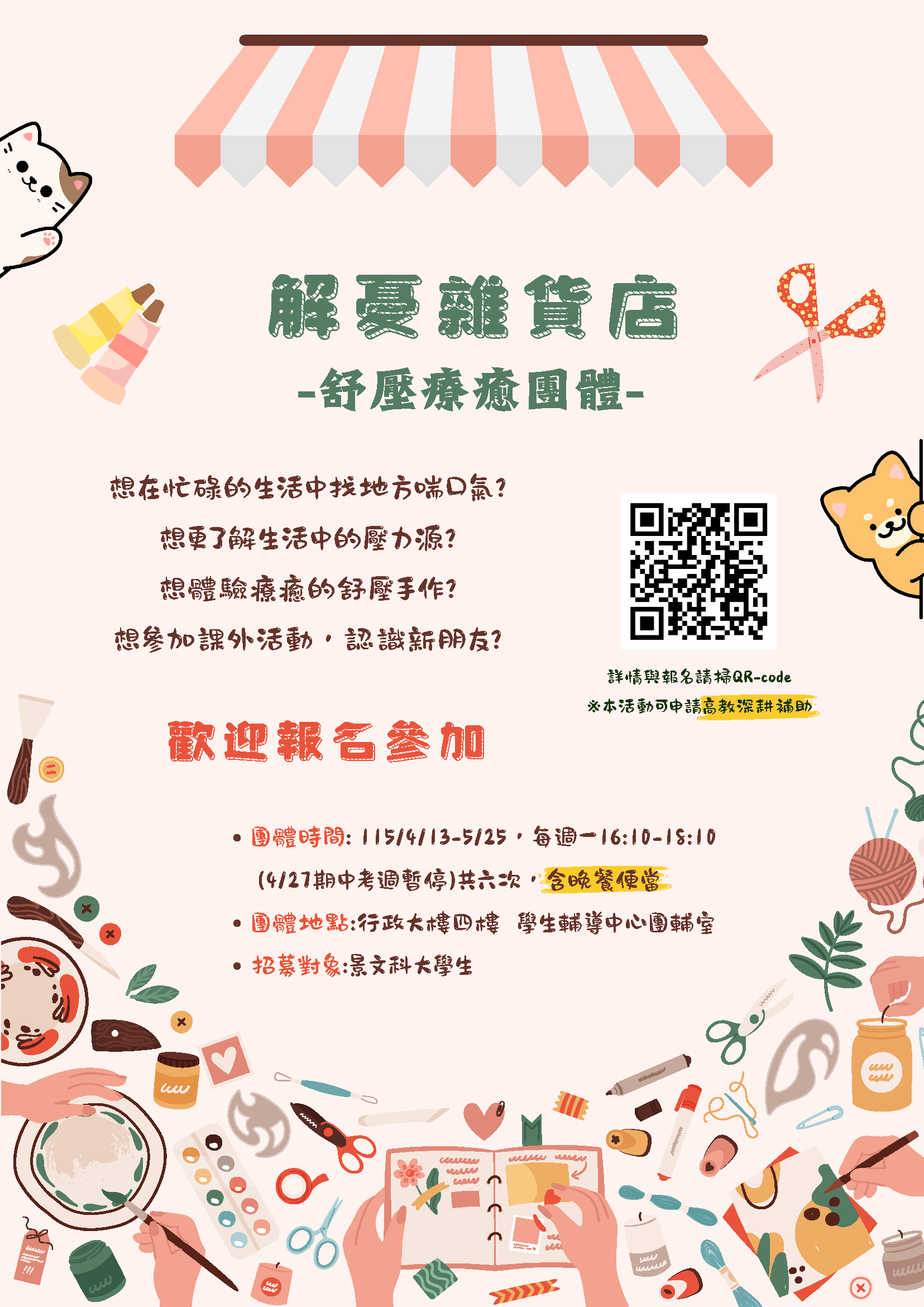 114-2【解憂雜貨店】舒壓療癒團體,開放報名!