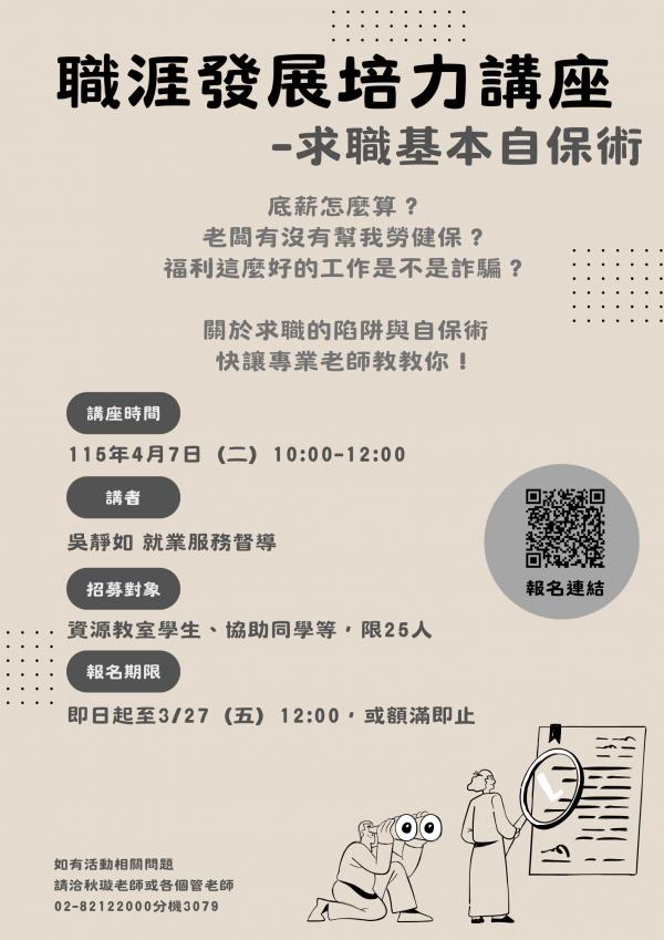 快來參加職涯發展培力講座「求職基本自保術」‼️‼️